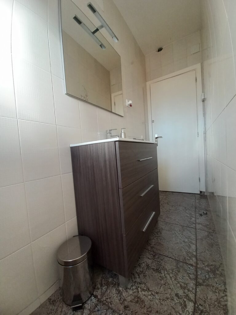 El punto de partida fue la renovación completa del espacio. Retiramos los antiguos azulejos y realizamos nuevas instalaciones de fontanería y electricidad para garantizar una base técnica impecable. A partir de ahí, apostamos por materiales que amplificaran la luz y la sensación de espacio.