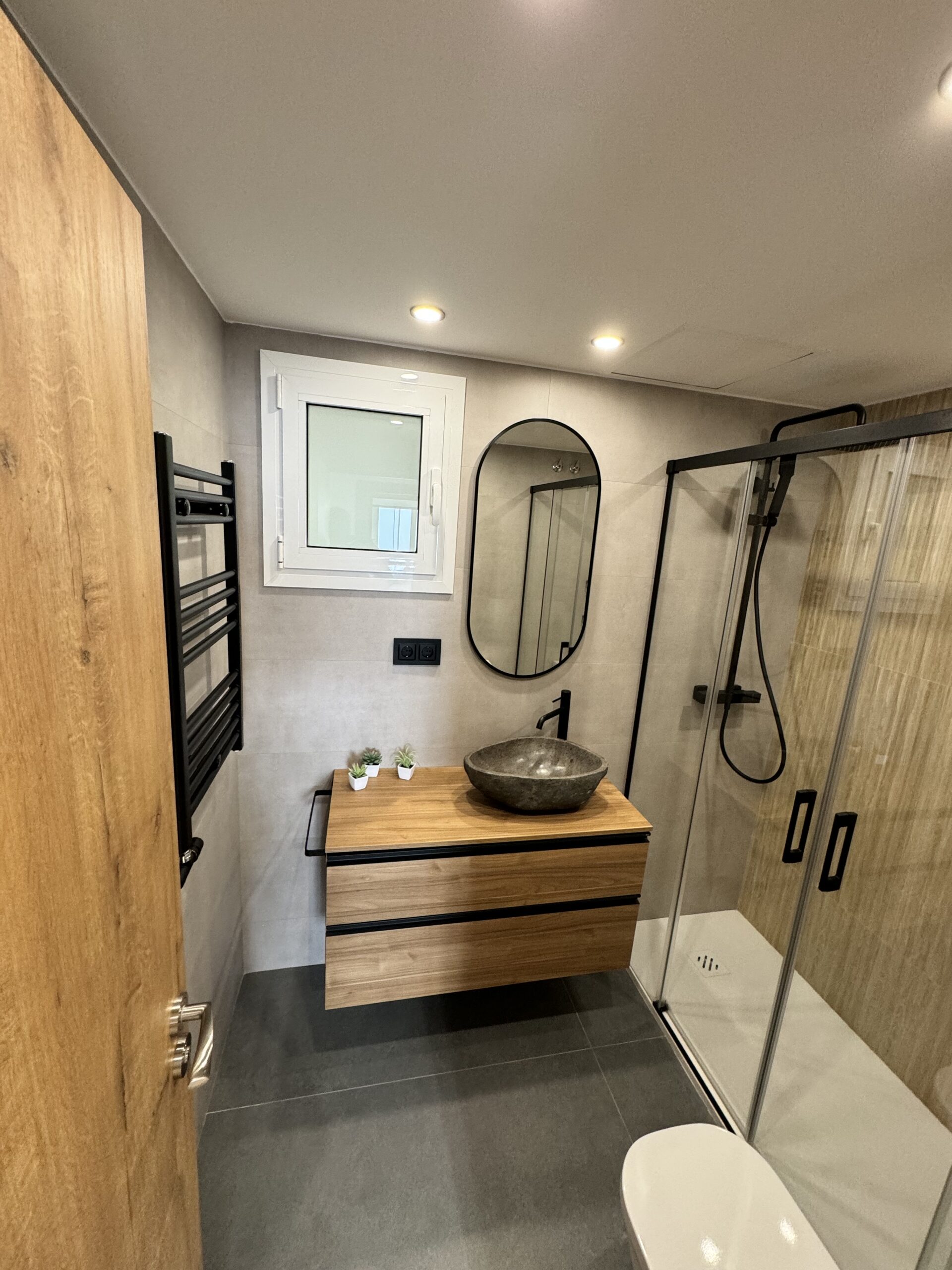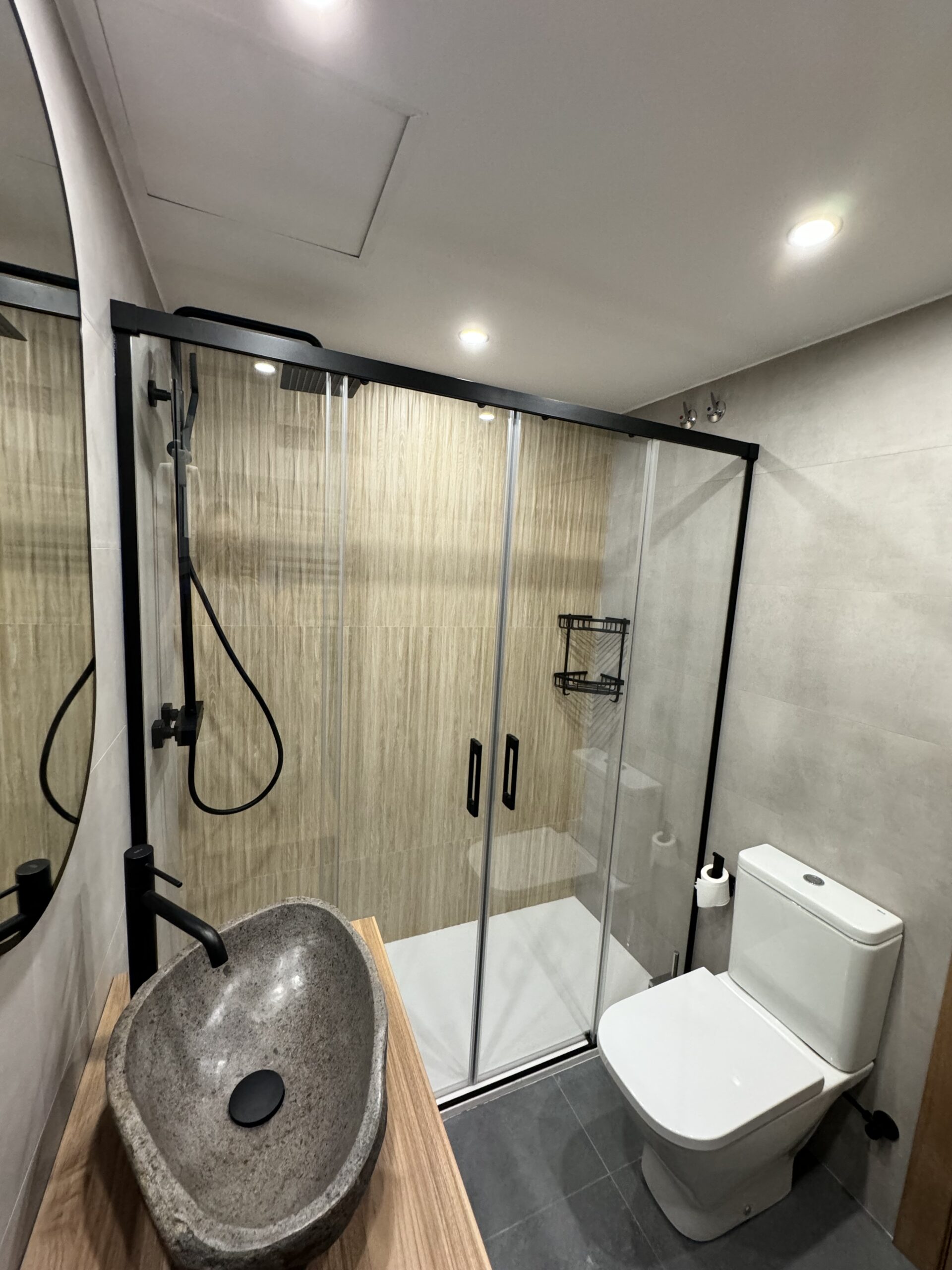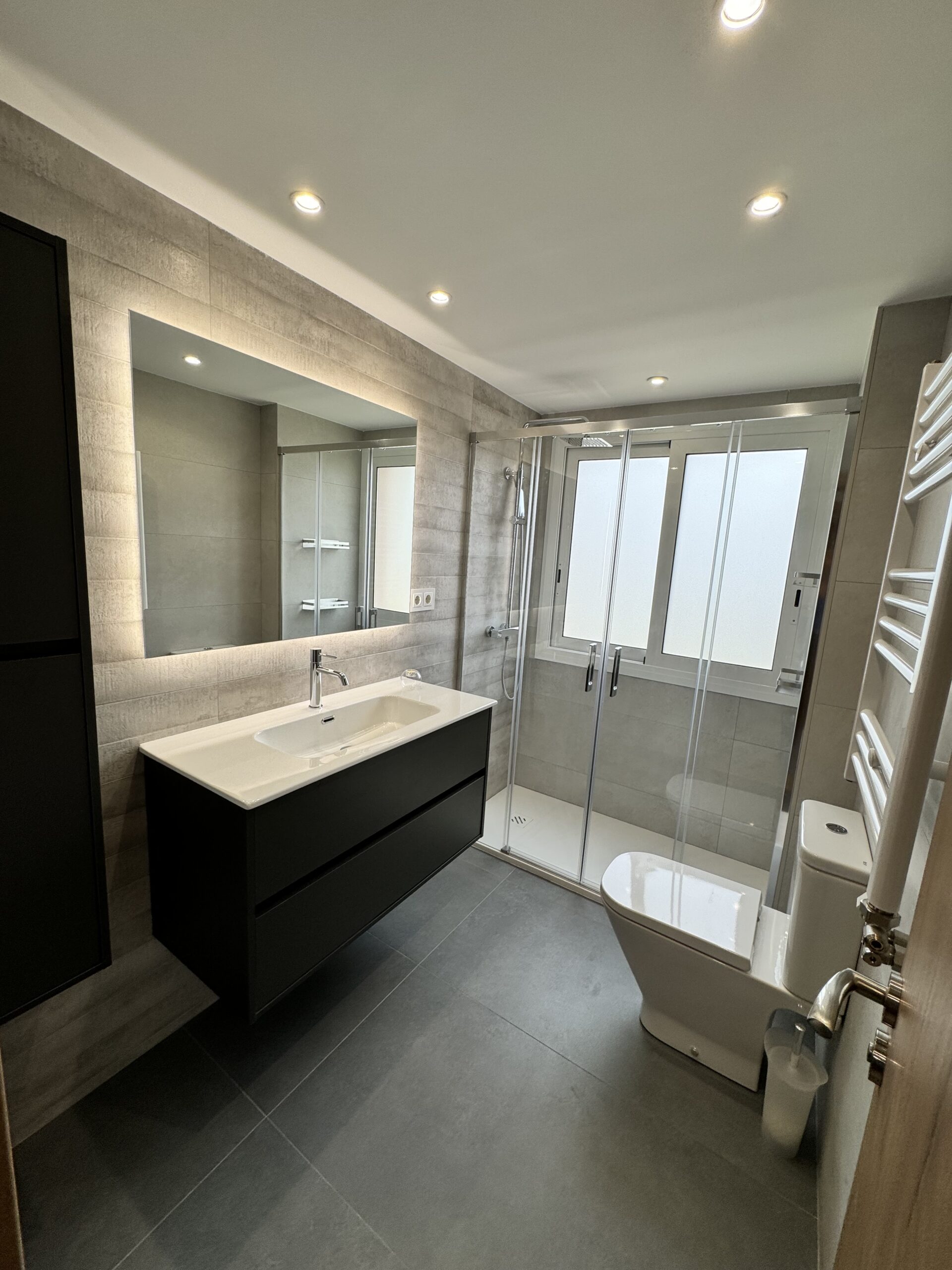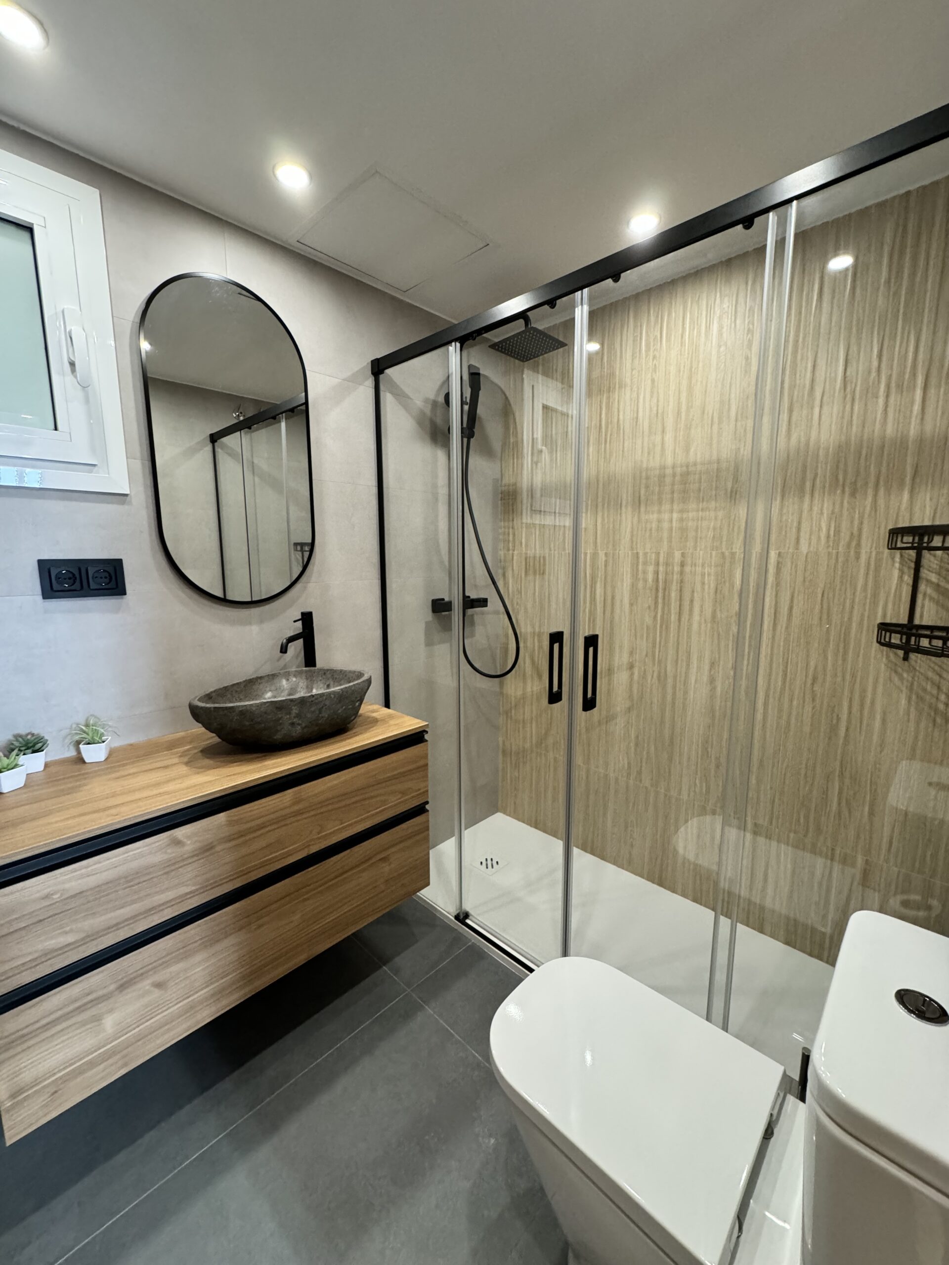 Baño funcional (2): Eliminamos el bidé para instalar un plato de ducha de pared a pared, ganando amplitud y comodidad.