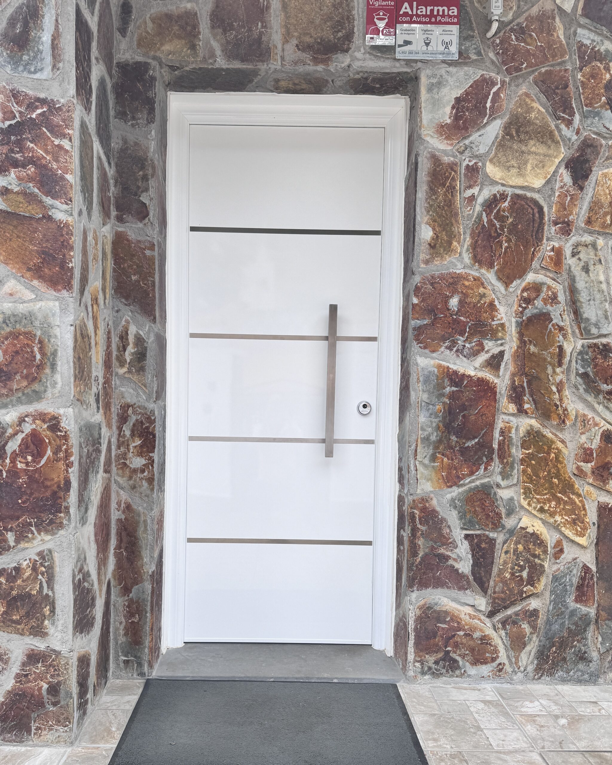 1. ¿Es posible cambiar la puerta de entrada si la comunidad exige un color específico? Sí, en Grup Innova somos especialistas en puertas de aluminio bicolor. Esto permite instalar una cara exterior que cumpla con la normativa estética de la comunidad en Sant Feliu de Llobregat (por ejemplo, blanco con líneas metálicas) y una cara interior totalmente personalizada para tu decoración (como el negro industrial de este proyecto).